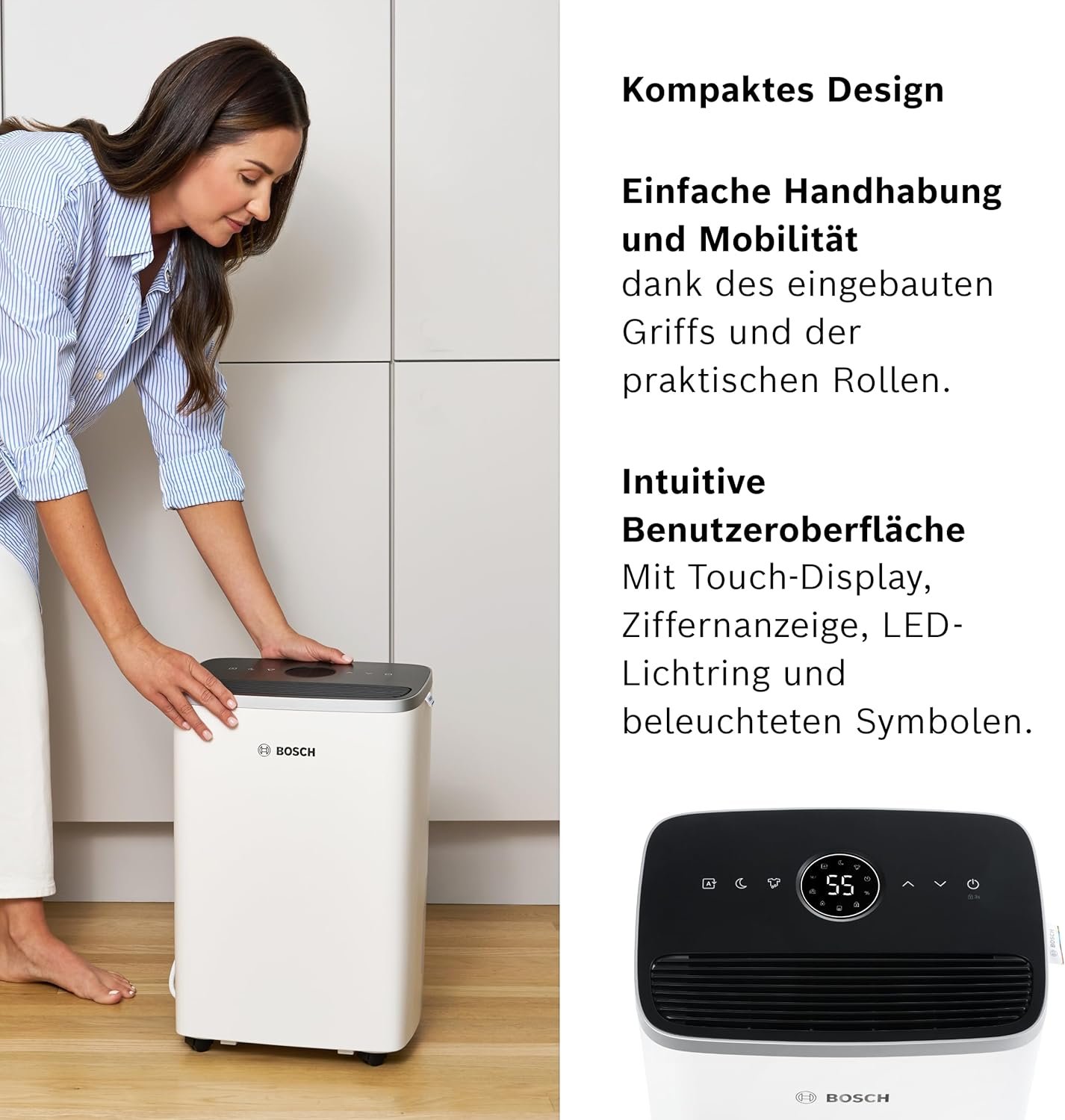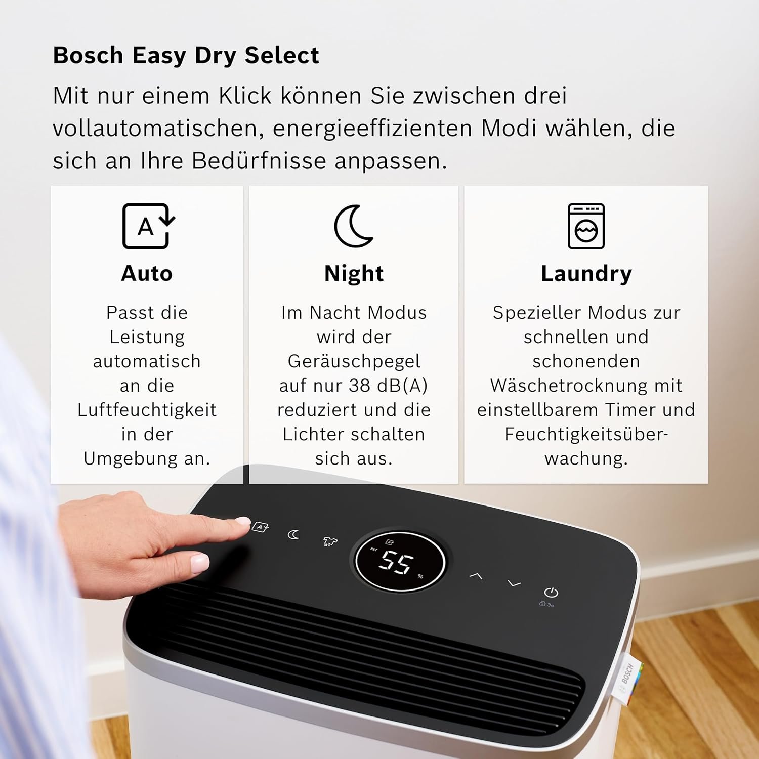Bosch Dry 4000 Luftentfeuchter (bis 33m²). Effizienter Raumentfeuchter, extrem leise mit Spezialmodus zur Wäschetrocknung