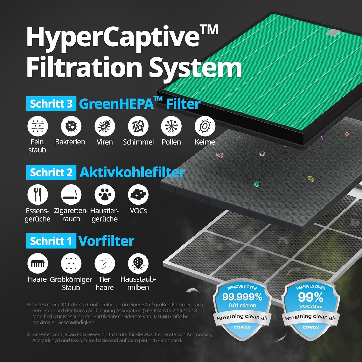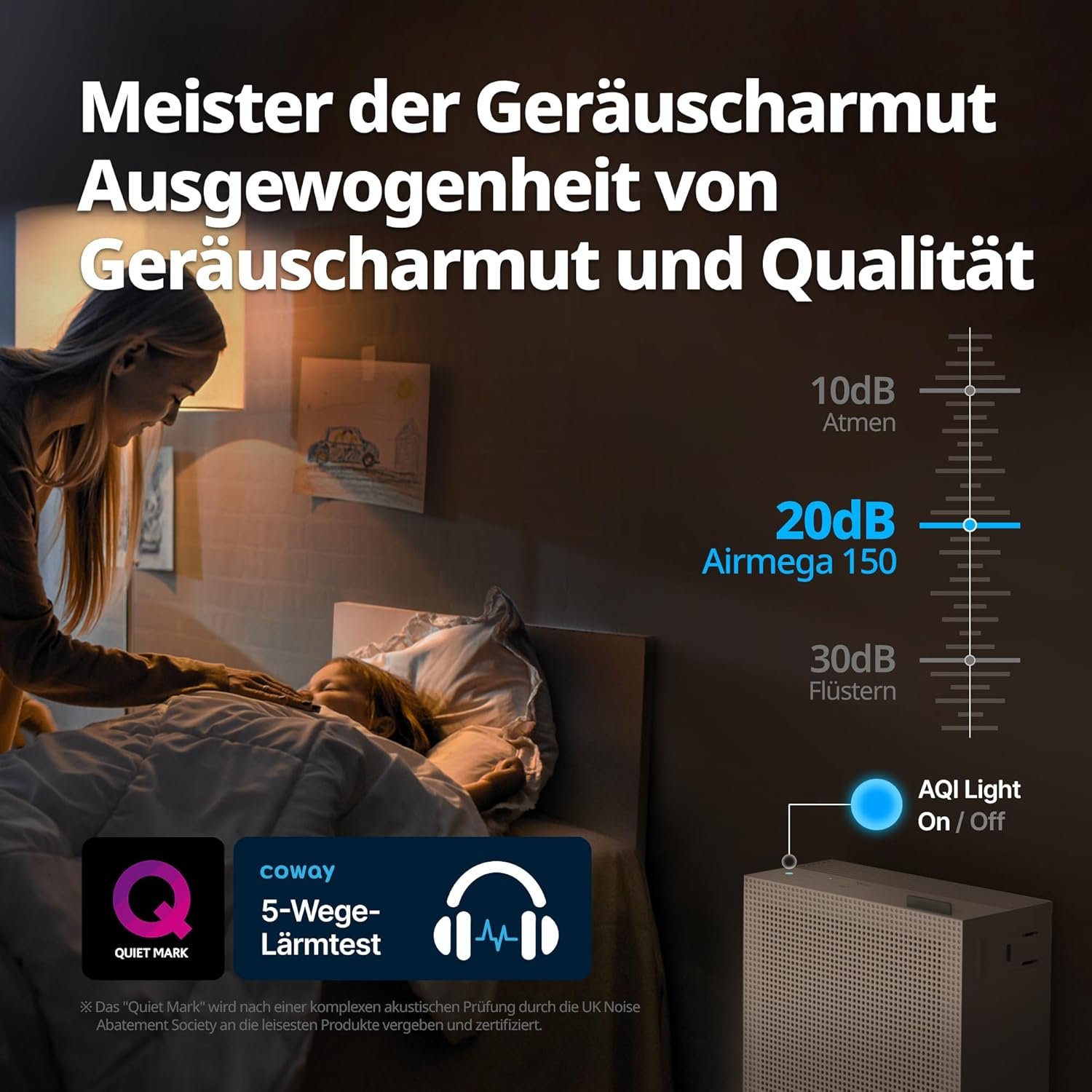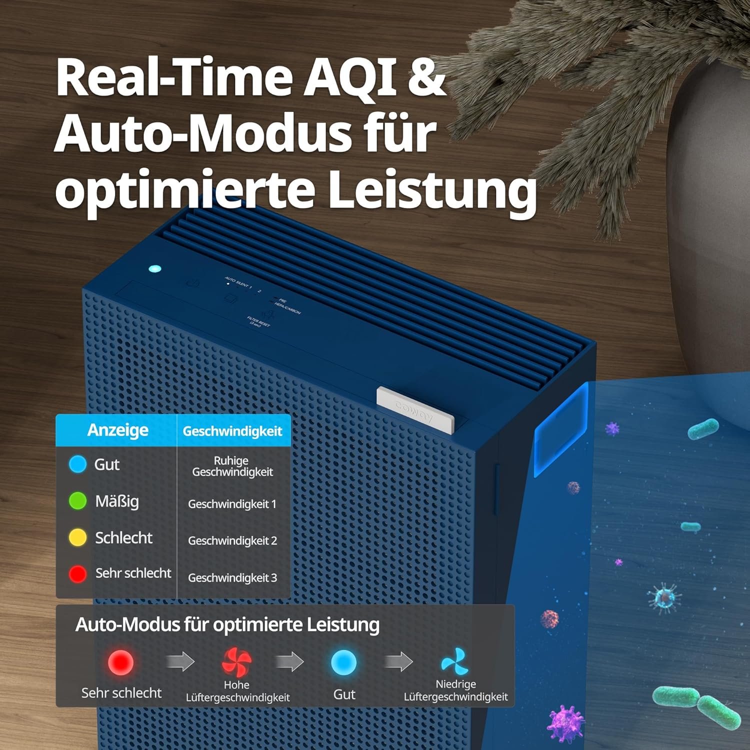COWAY Airmega 150 Luftreiniger (Marineblau). Extrem leise 20dB & ECARF-zertifiziert. Mit waschbarem Vorfilter gegen Allergien & Staub