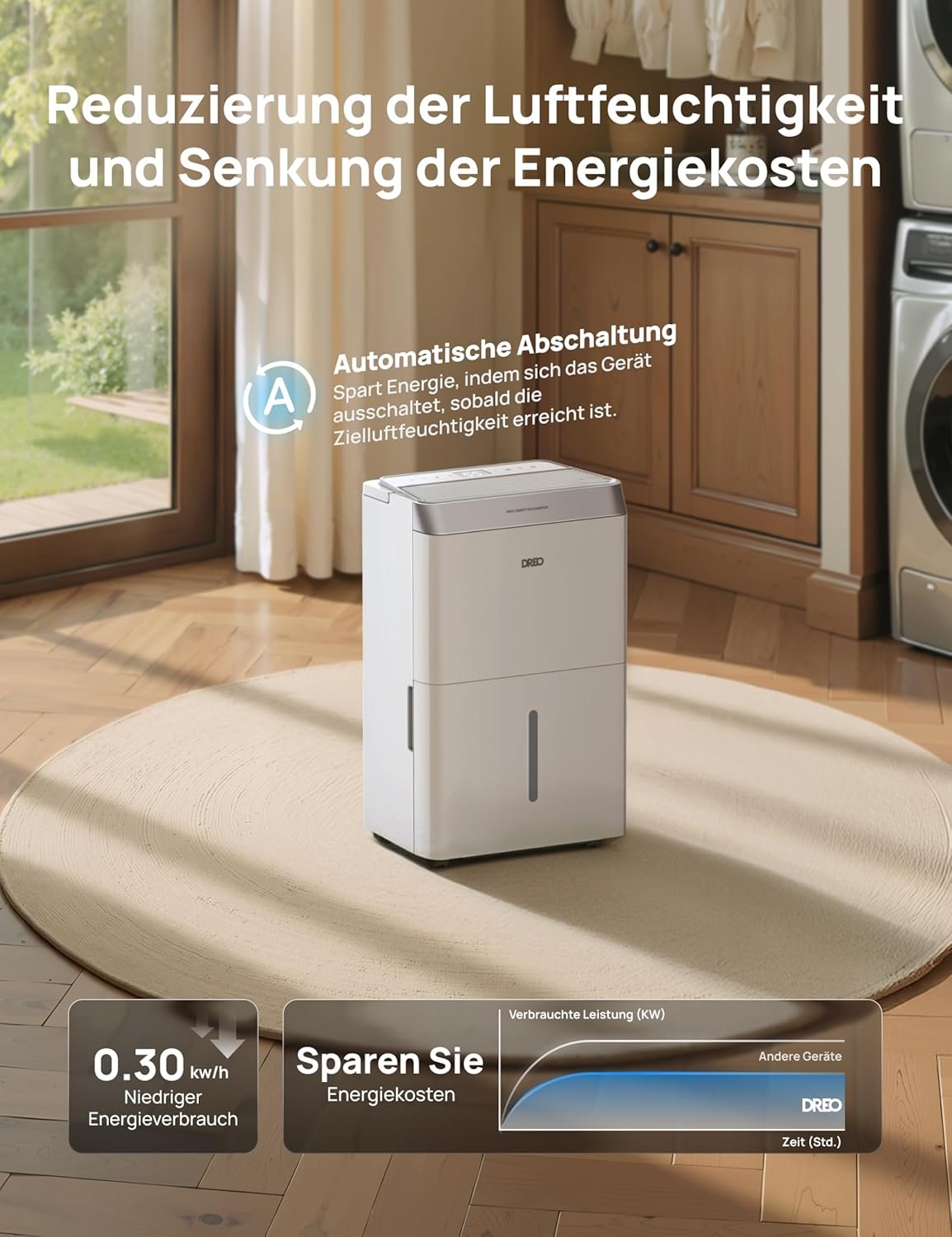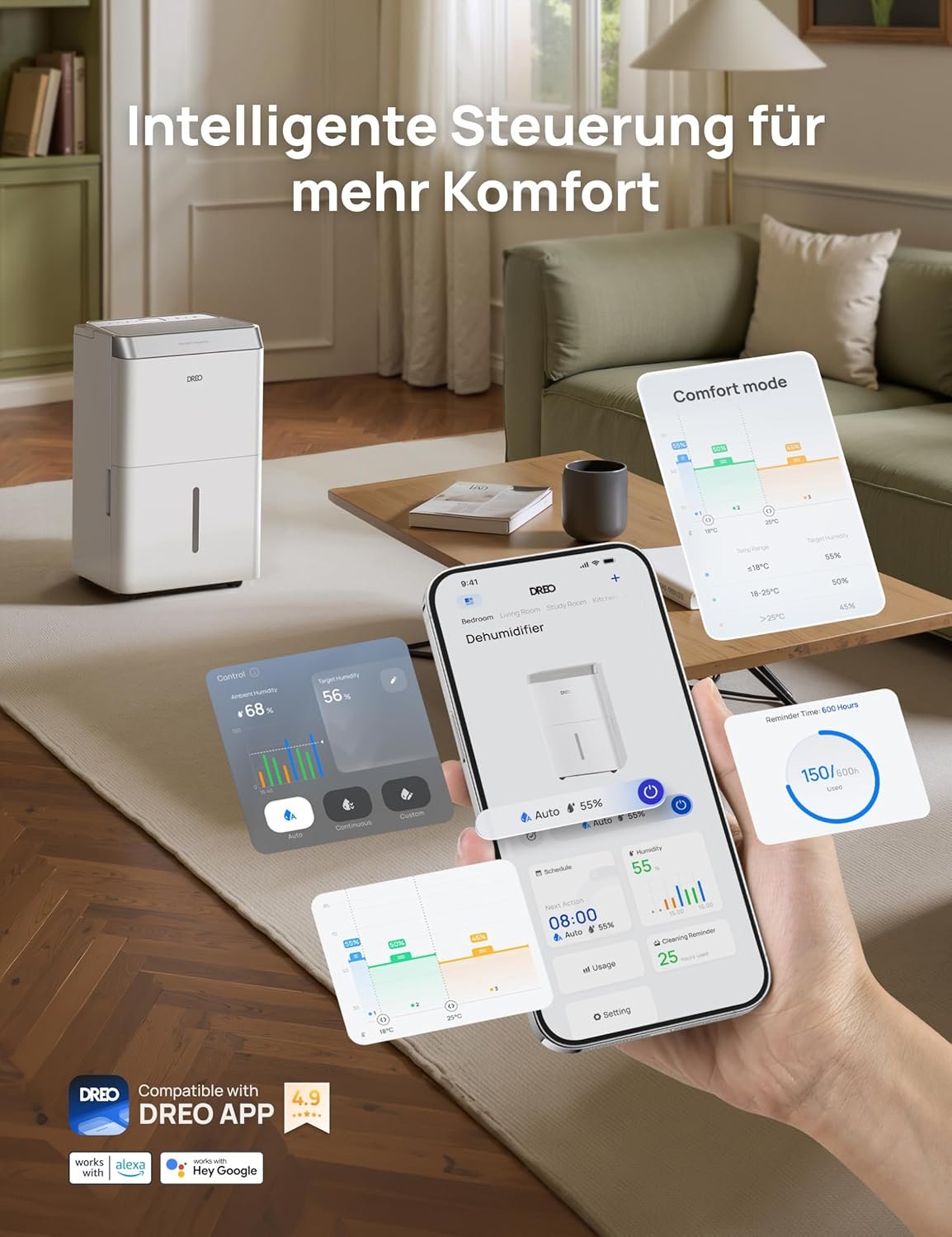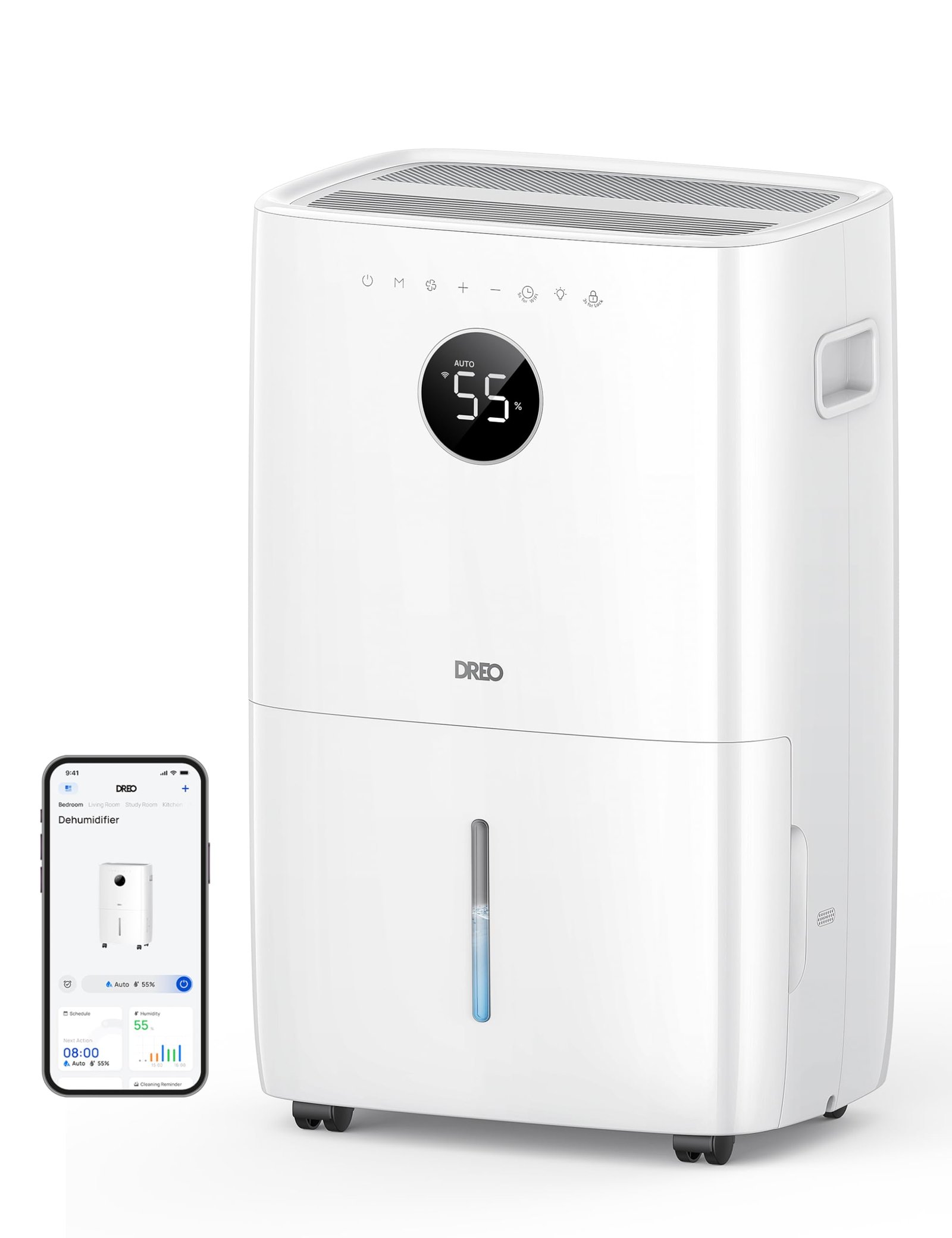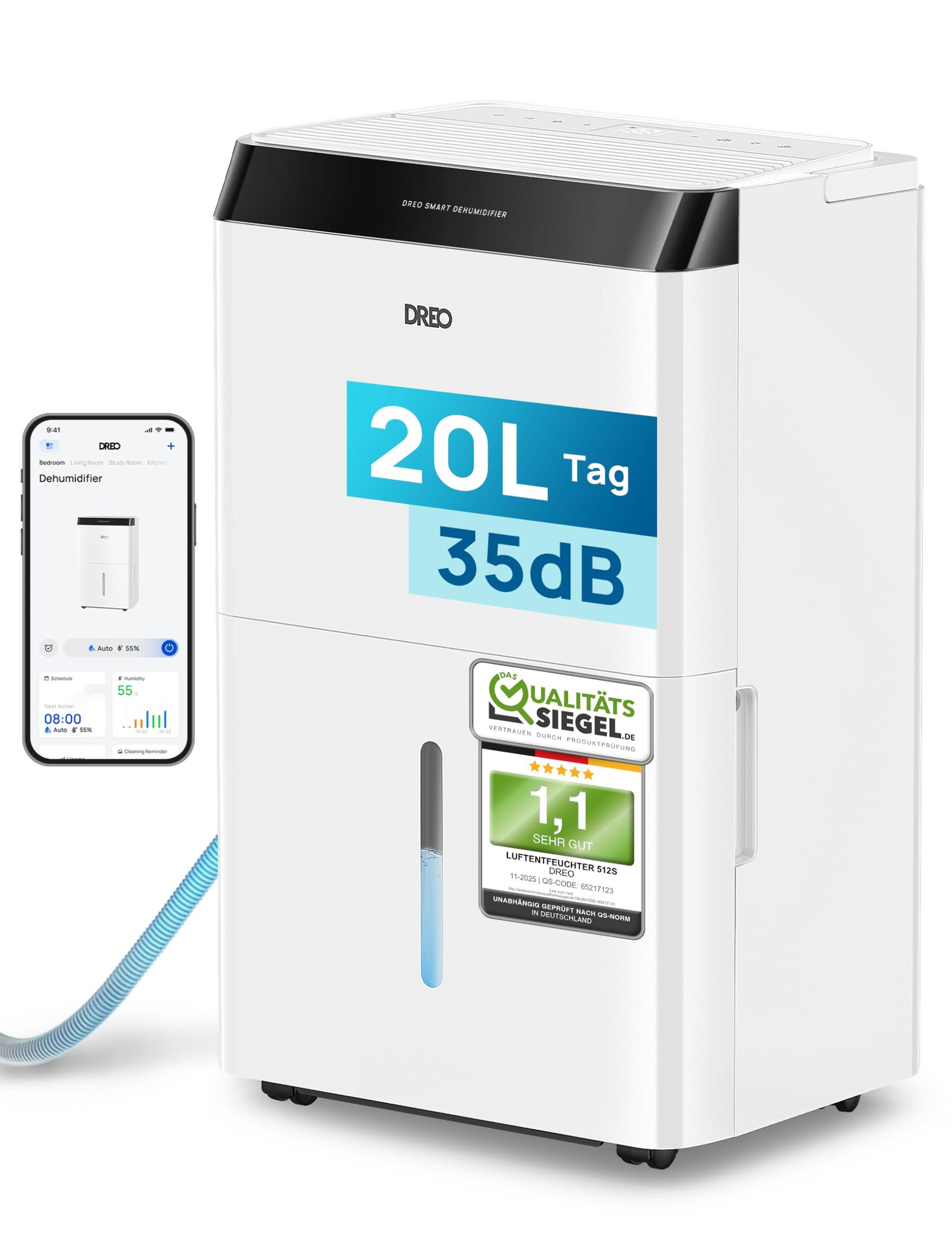 Dreo Smart-Luftentfeuchter 20L/Tag (40m²). App & WLAN, ultra-leise (35dB) mit Wäschemodus & 24h Timer. Ideal für Schlafzimmer & Keller