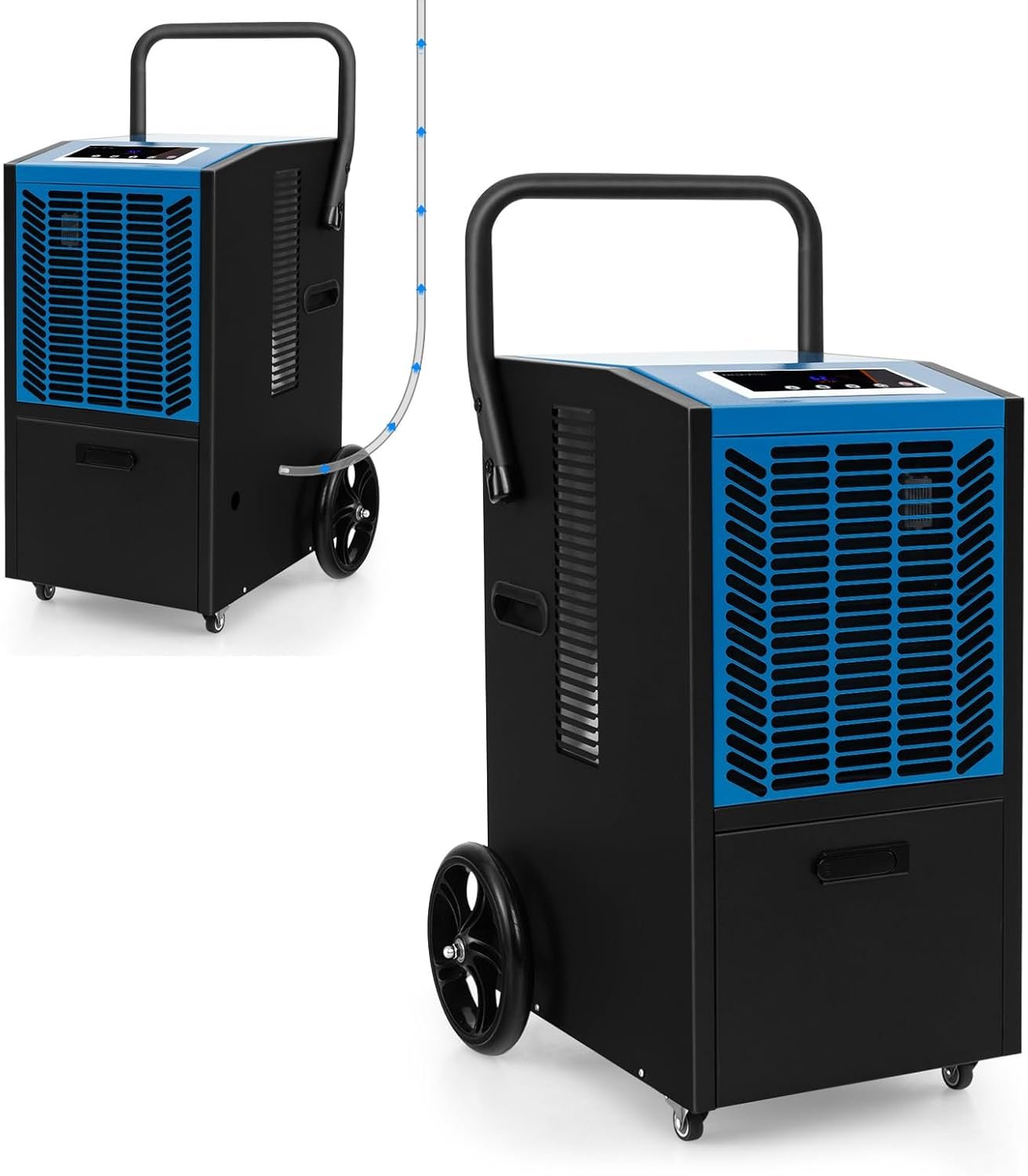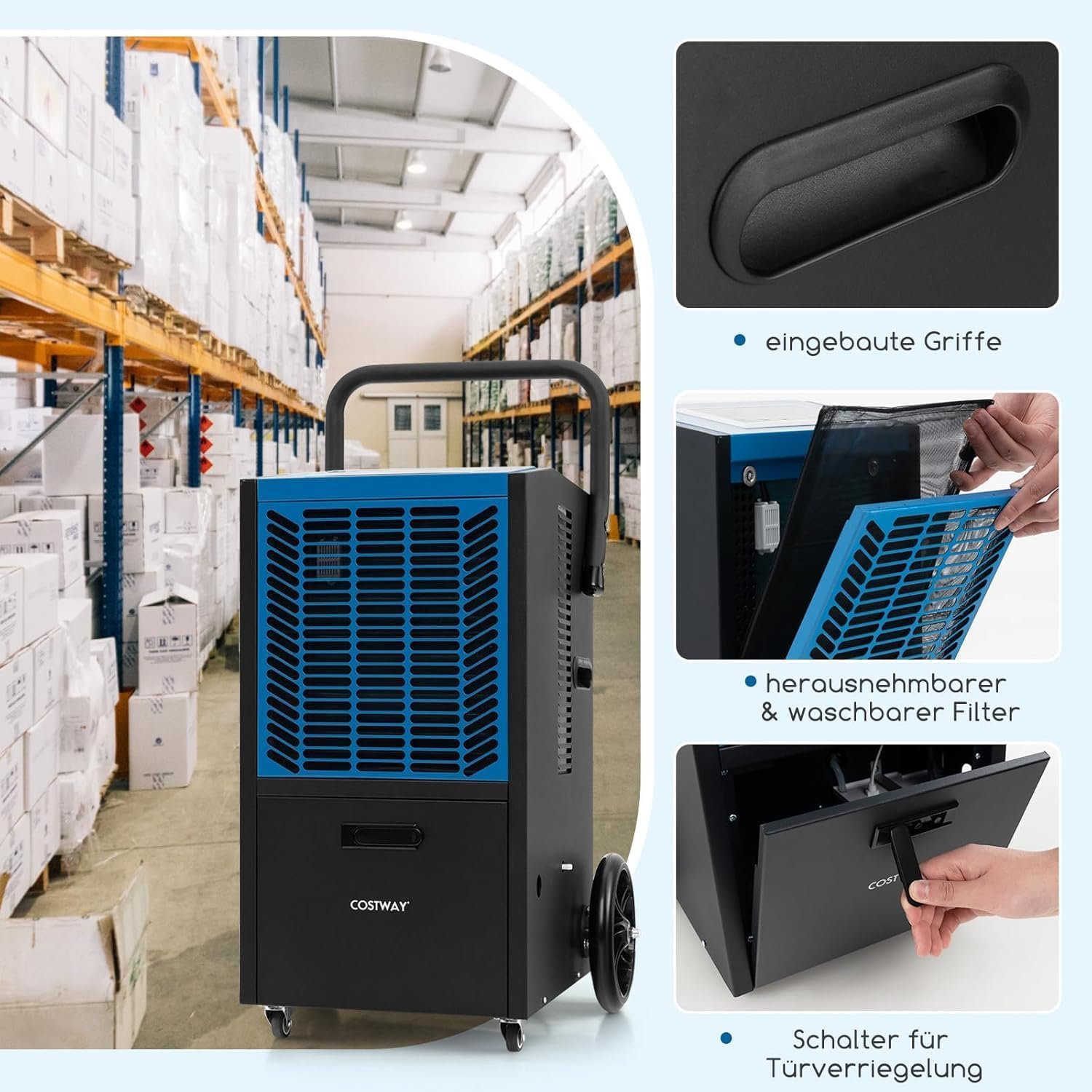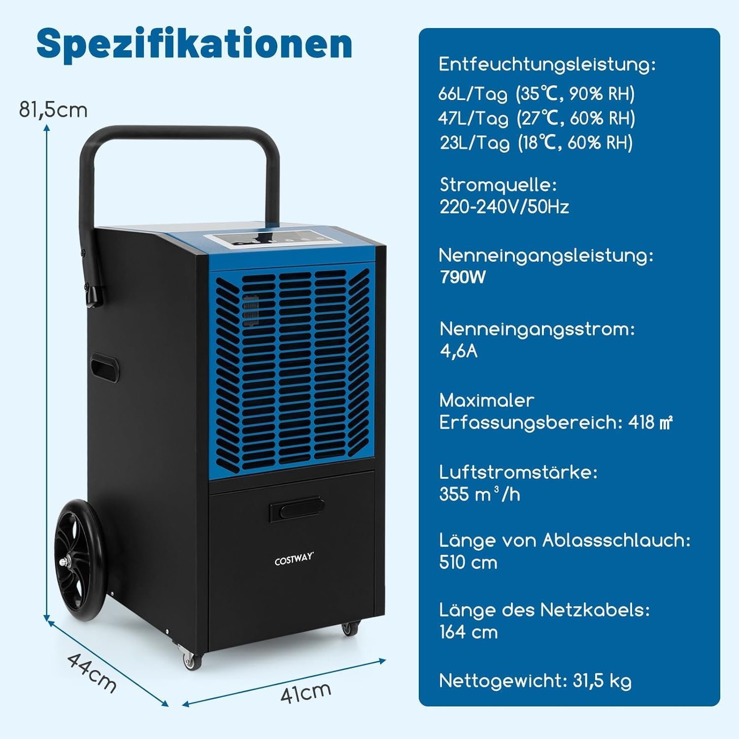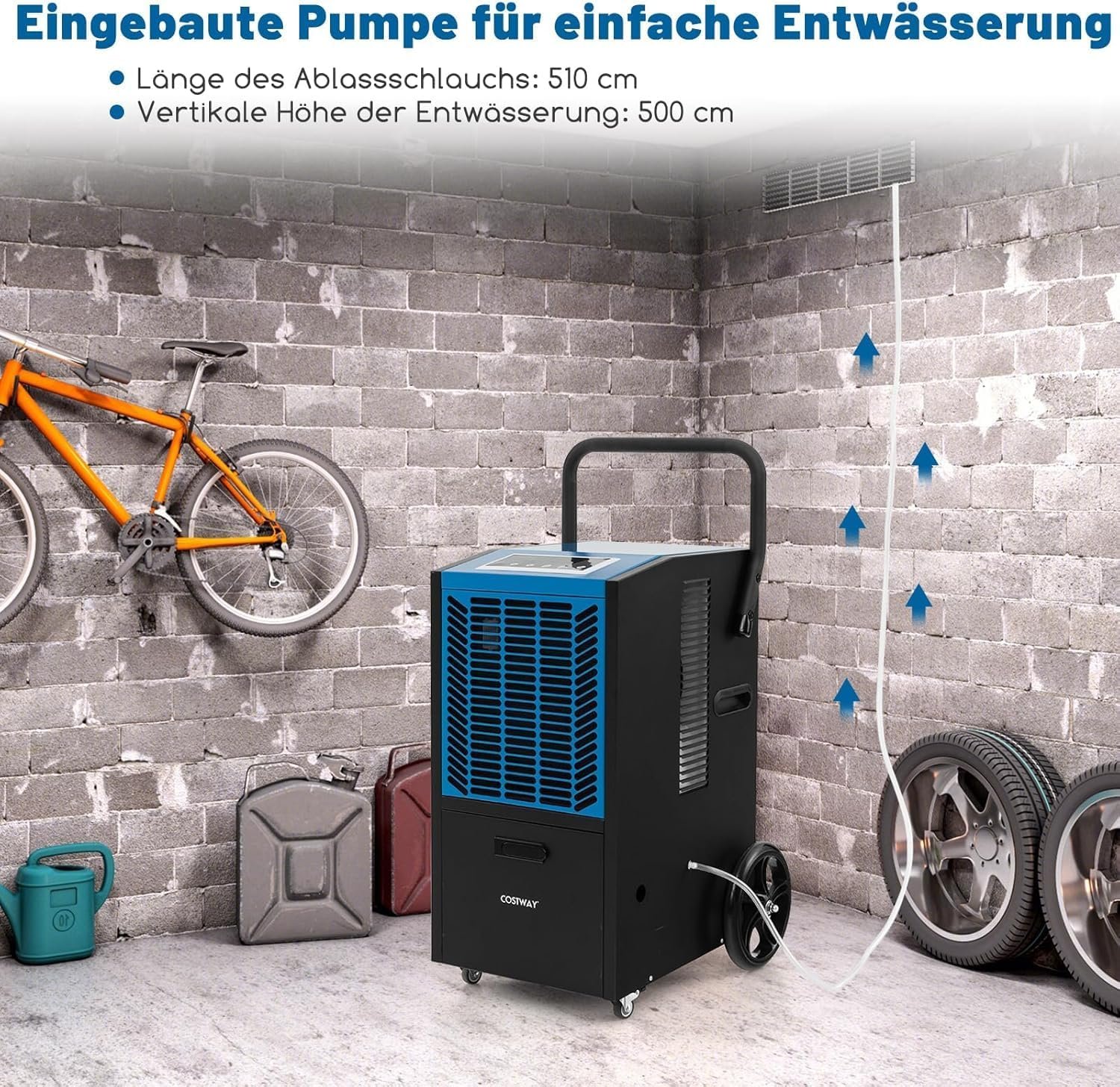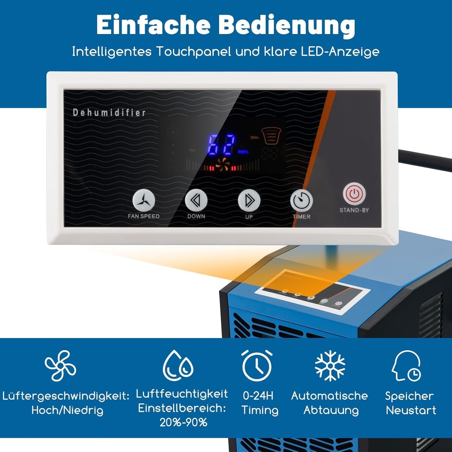 FANTASK Bautrockner 66 L/Tag mit Pumpe & Ablaufschlauch. Mobiler Industrie-Luftentfeuchter für Keller & Baustelle (24h-Timer, Blau)