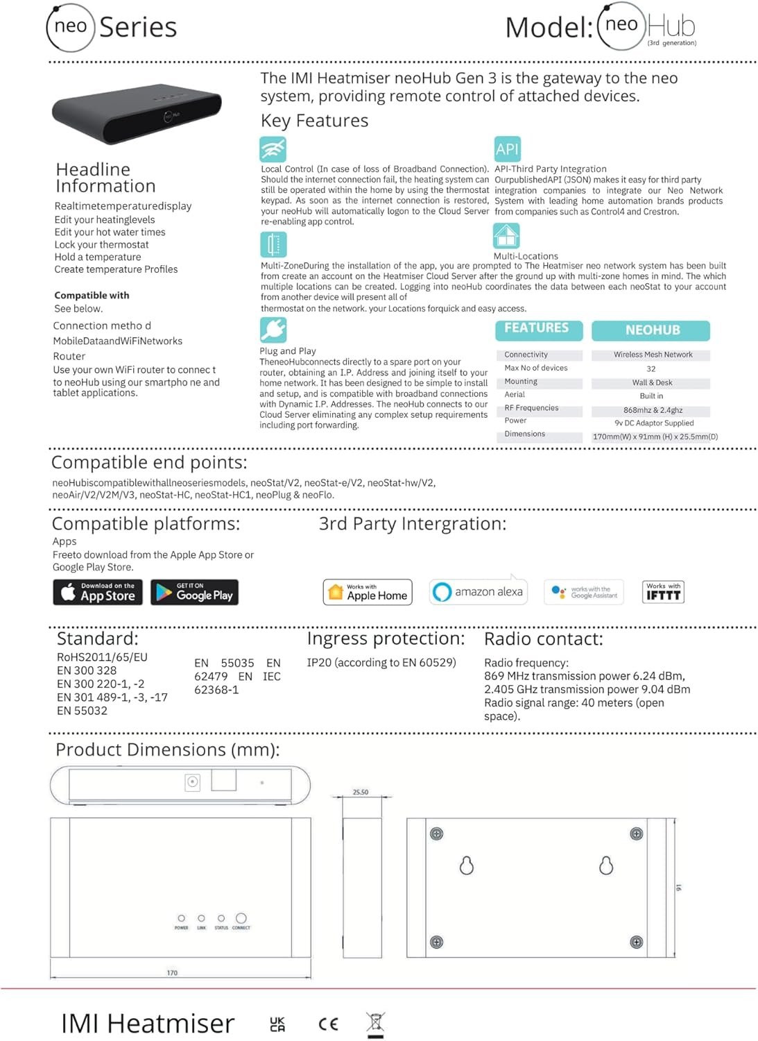 Heatmiser NeoHub Gen 2 Gateway. Smart-Home Zentrale für Neostat, NeoAir & NeoPlug. Internet-Heizungssteuerung per App & HomeKit