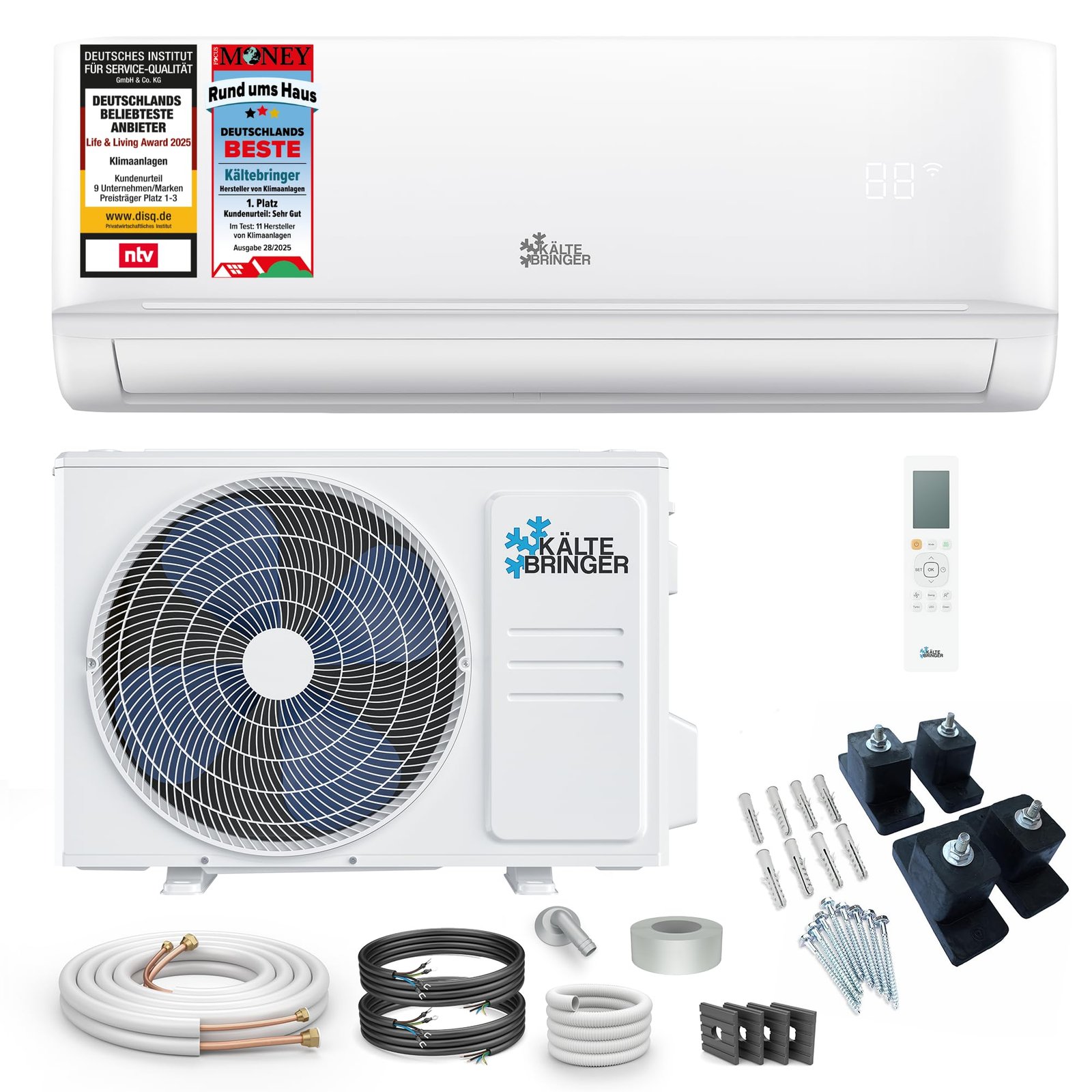 Kältebringer Split Klimaanlage 12.000 BTU (3,5 kW), mit Heizfunktion, WiFi/App, bis 55 m², sehr leise, R32, 5 m Kupferleitung & Montagematerial