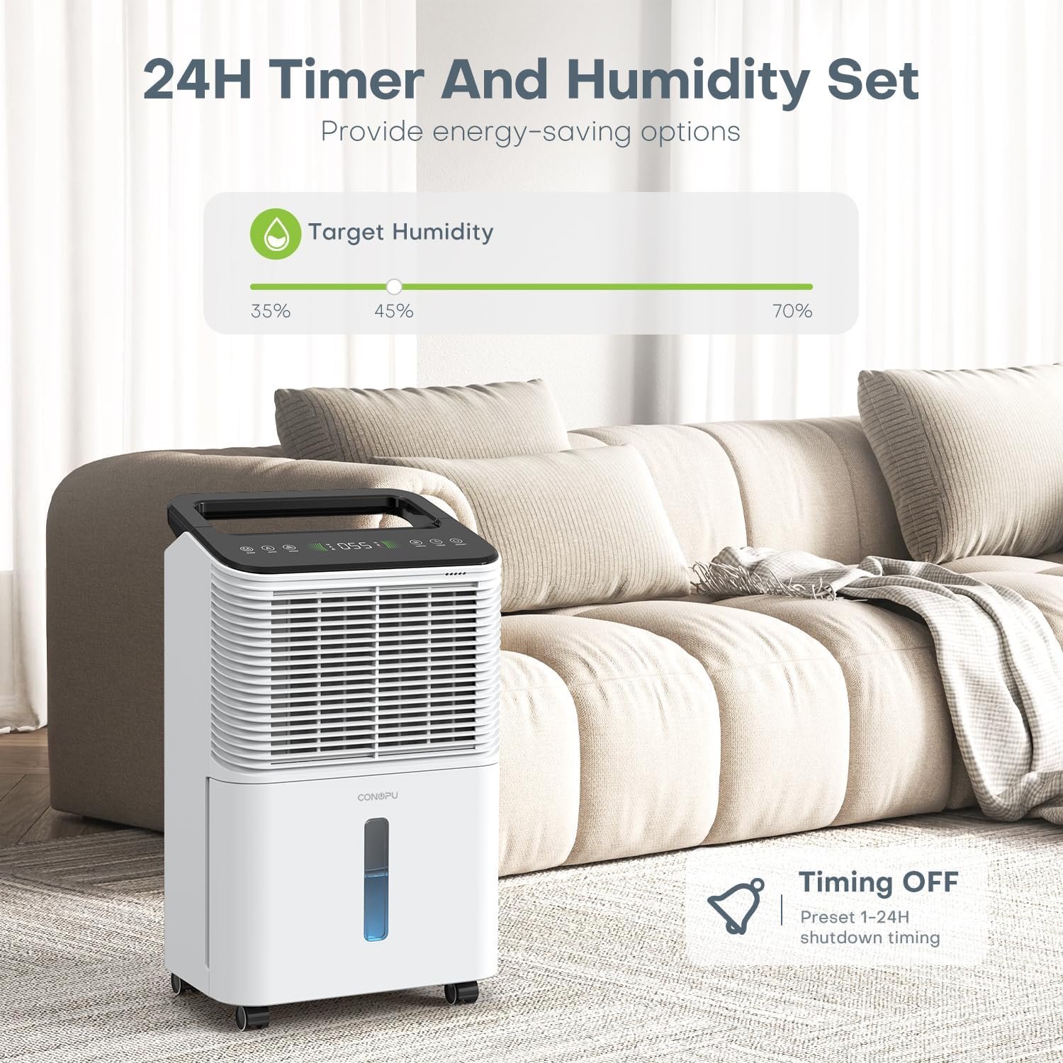 Ultra-leiser elektrischer Luftentfeuchter 16L/Tag. Smart-Steuerung, AUTO-Modus, LED-Anzeige & 24h-Timer. Effizienter Raumentfeuchter