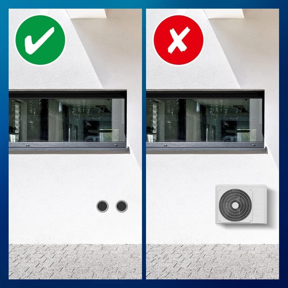 „Ohne Außengerät“ bedeutet: keine sichtbare Außeneinheit, aber Wanddurchführung/Luftkanäle über 2 Bohrungen sind notwendig.