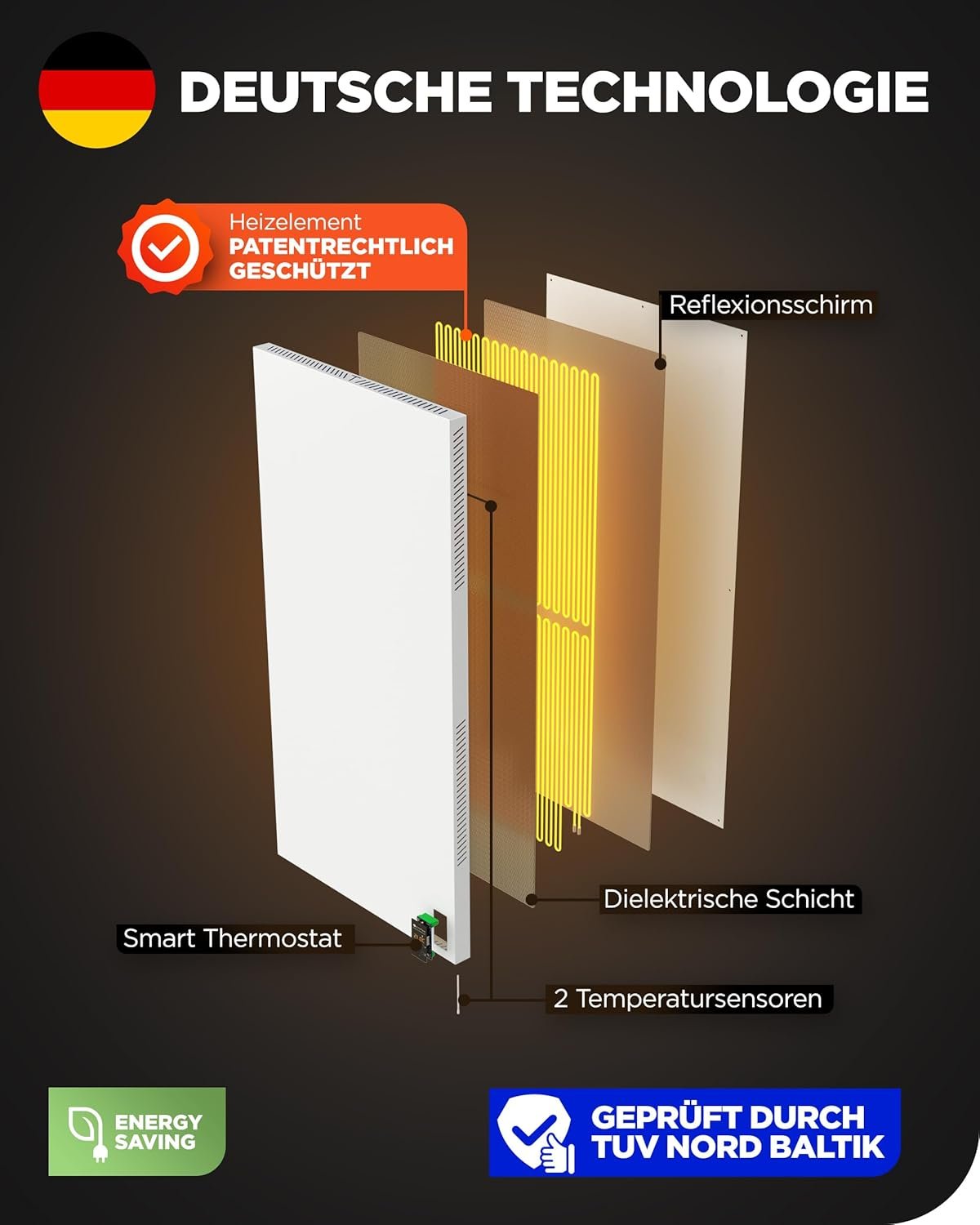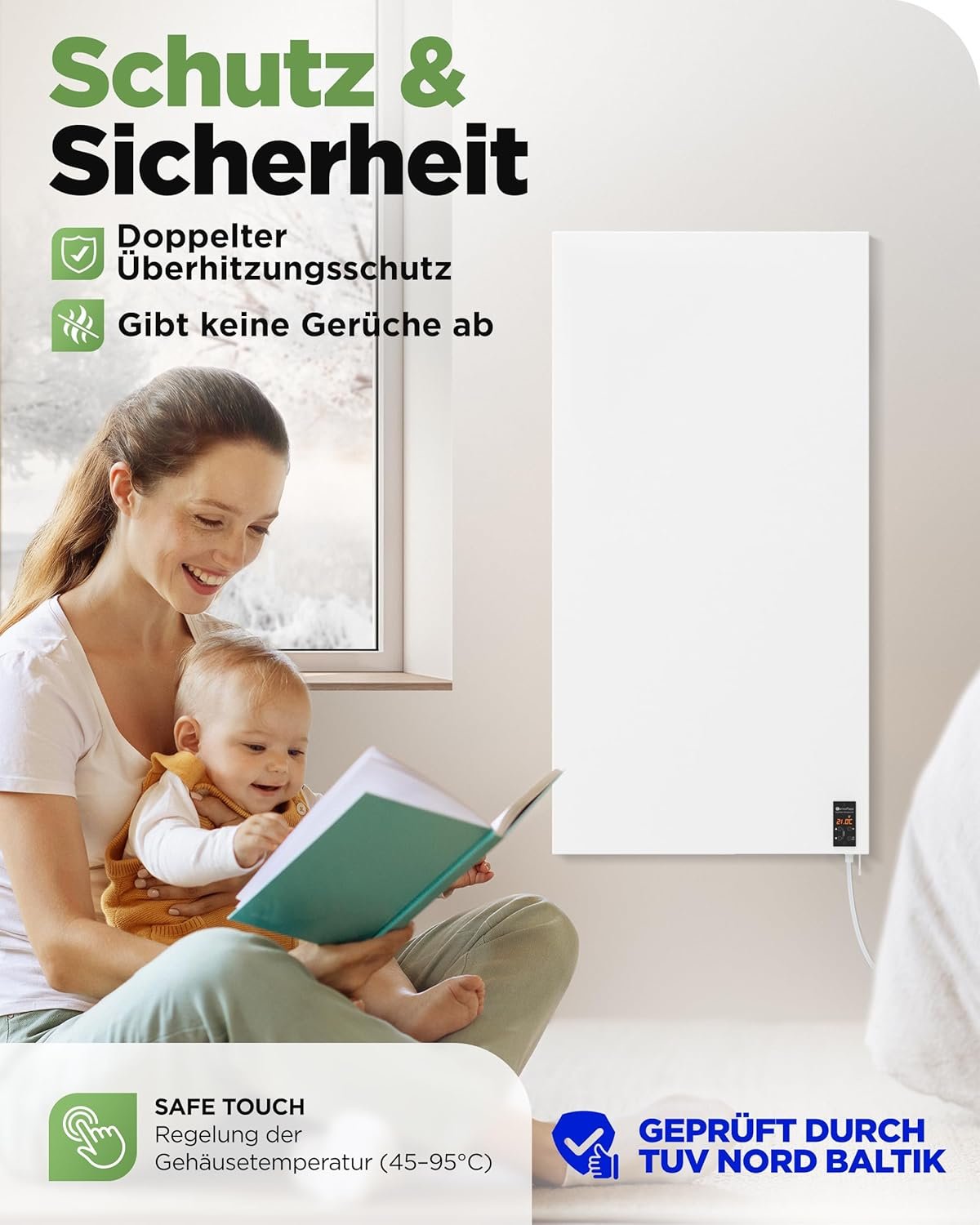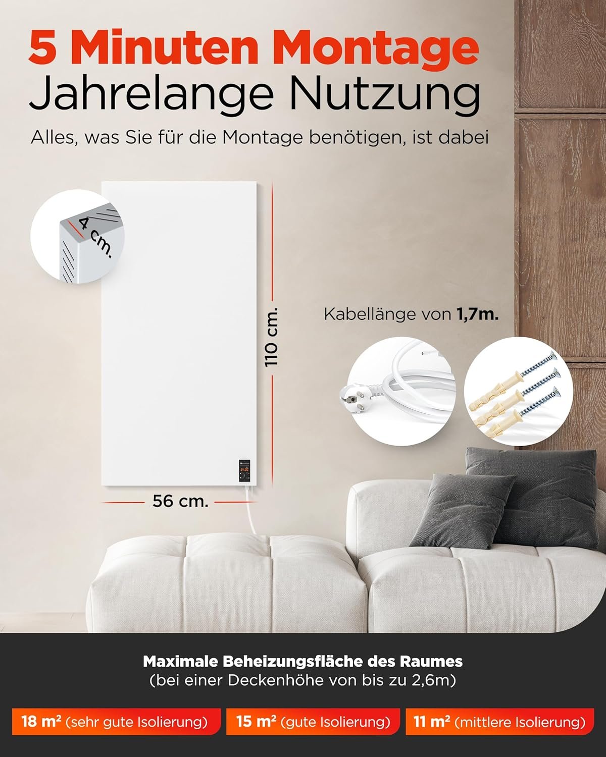 700W WiFi Infrarotheizung & Konvektor (bis 18m²). Smarte Hybrid-Wandheizung mit Thermostat & App. Energiesparend für Bad & Wohnzimmer