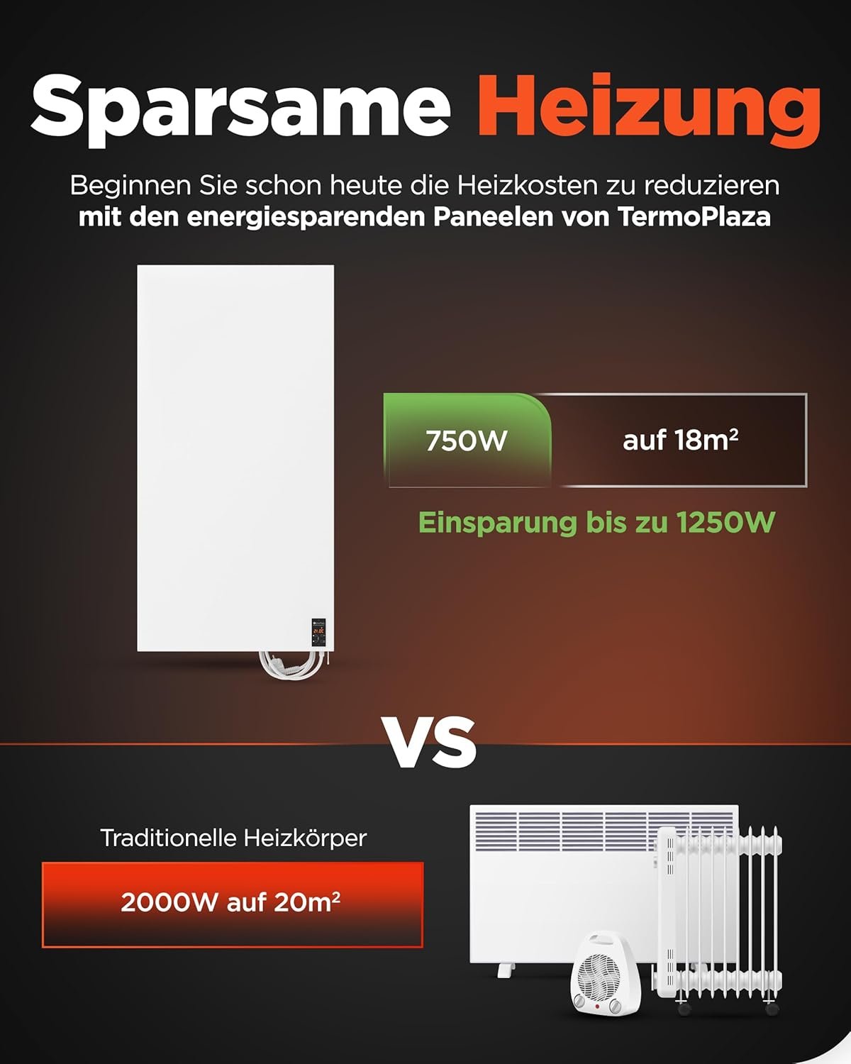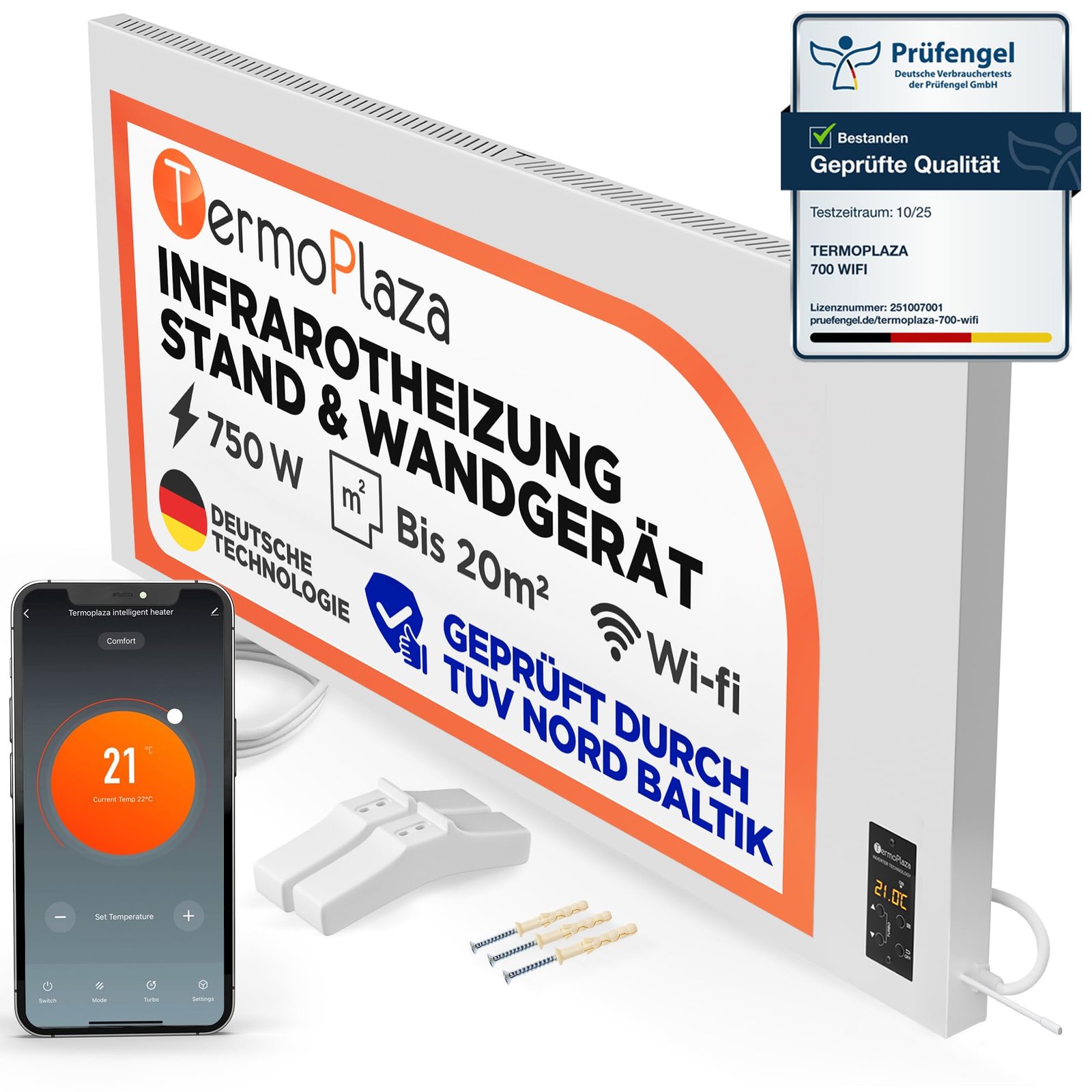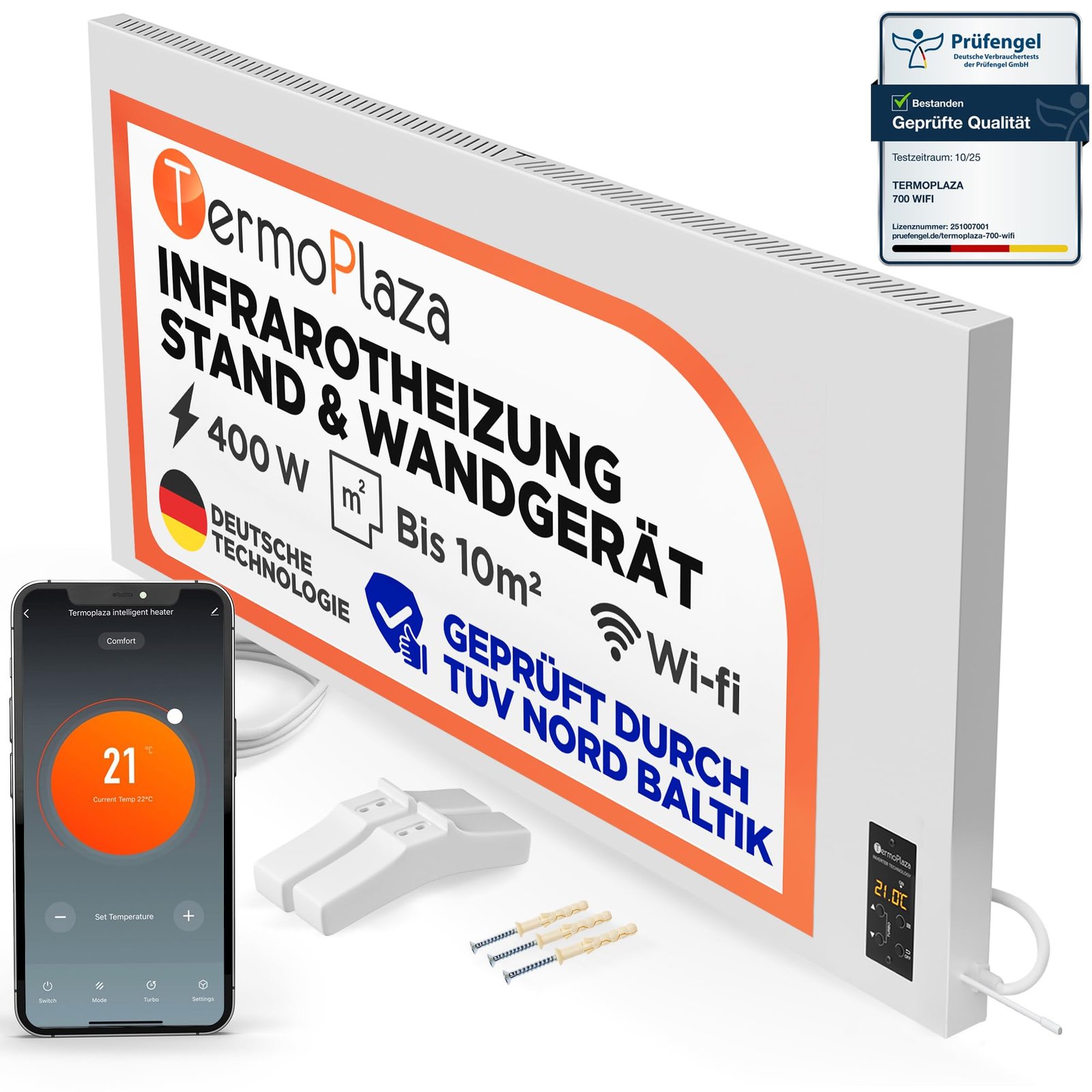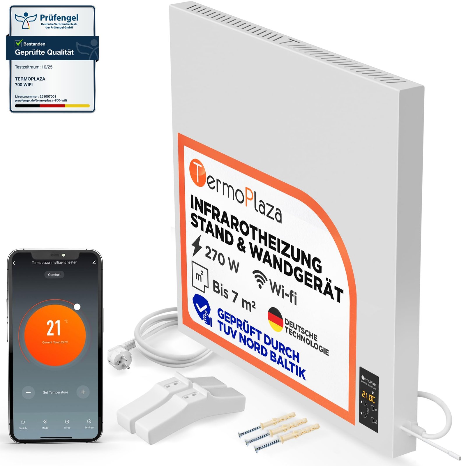 700W WiFi Infrarotheizung & Konvektor (bis 18m²). Smarte Hybrid-Wandheizung mit Thermostat & App. Energiesparend für Bad & Wohnzimmer